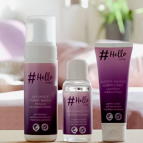 #Hello Love er en allergivenlig intimserie, som er særligt udviklet til intimpleje eller ved samleje. Hello Love-serien indeholder glidecreme, intimsæbe og massageolie, som alle er Svanemærket og certificeret af AllergyCertified. Hele serien er uden parfume og farvestoffer. Kort sagt en serie til dig, der vil give dit sexliv et boost og samtidigt passe på huden og miljøet omkring dig. Se alle intim produkter herunder.